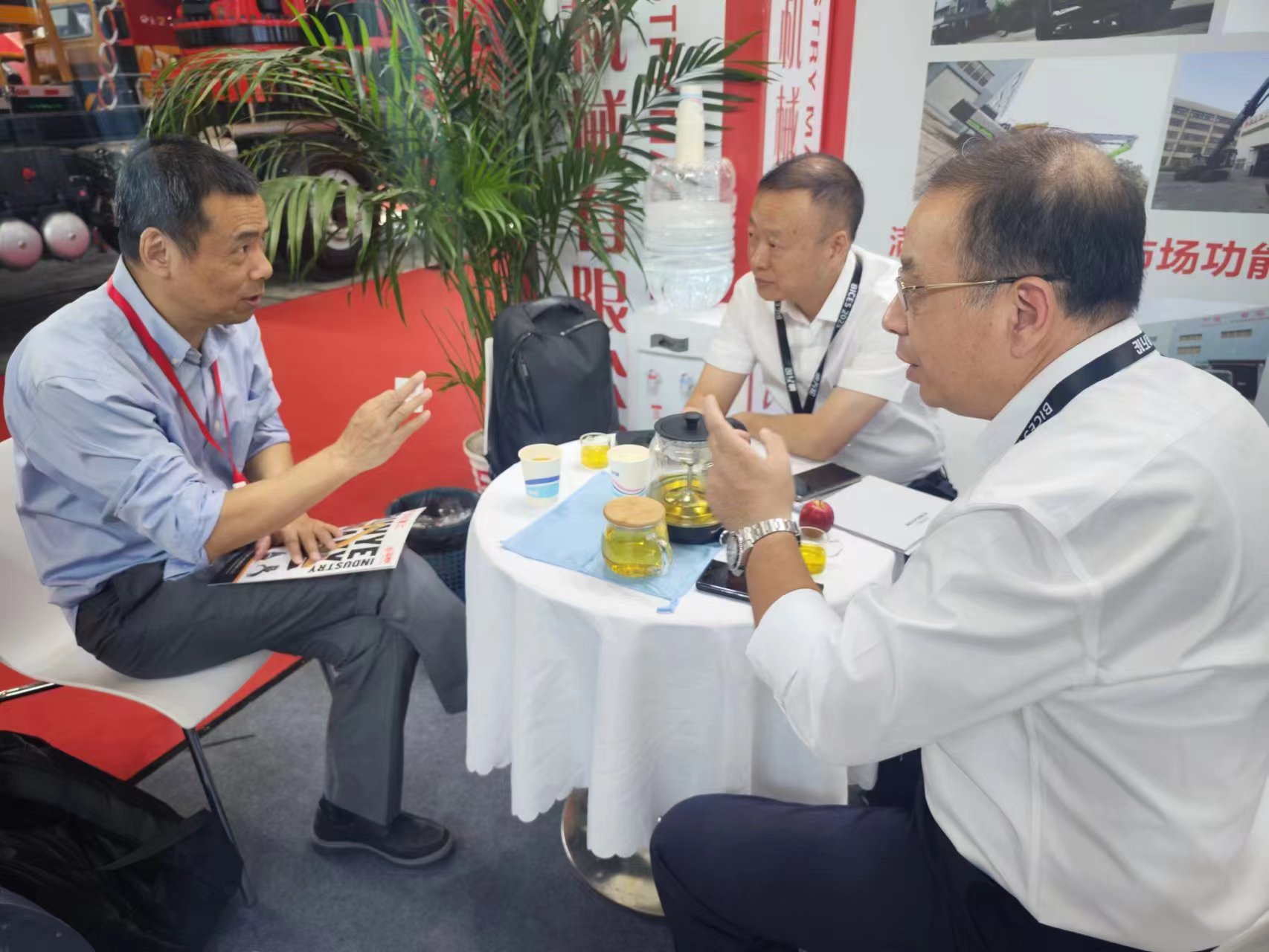 力星行機(jī)械有限公司張總到訪潤冶展位,與董事長、副董事長、銷售總經(jīng)理洽談