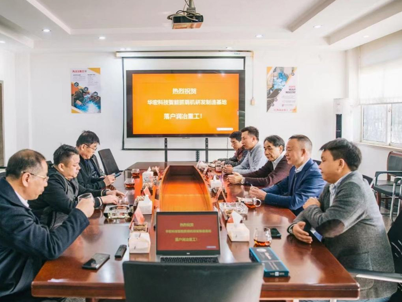 2023年12月2日,江蘇華宏科技股份有限公司確認將智能抓鋼機研發(fā)制造基地落戶潤冶重工公司,雙方舉行了交流授牌揭幕儀式,共同探討了雙方后續(xù)深入合作,開發(fā)設(shè)計生產(chǎn)針對資源回收行業(yè)所特定需要的特種設(shè)備--智能抓鋼機產(chǎn)品以及“蟹老大”特裝屬具生產(chǎn)銷售合作相關(guān)項目。